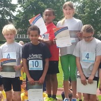 Einen weiteren Titel gab’s beim Dreikampf aus 50-Meter-Lauf, Weitsprung und Schlagballweitwurf. In der Einzelwertung der Jungen schlug unsere Sportskanone Jadon mal wieder zu und war auch hier nicht zu schlagen. Und mit Steven, Rei und Alia landeten sogar noch drei weitere kleine Nachwuchsleichtathleten unten den ersten zehn.